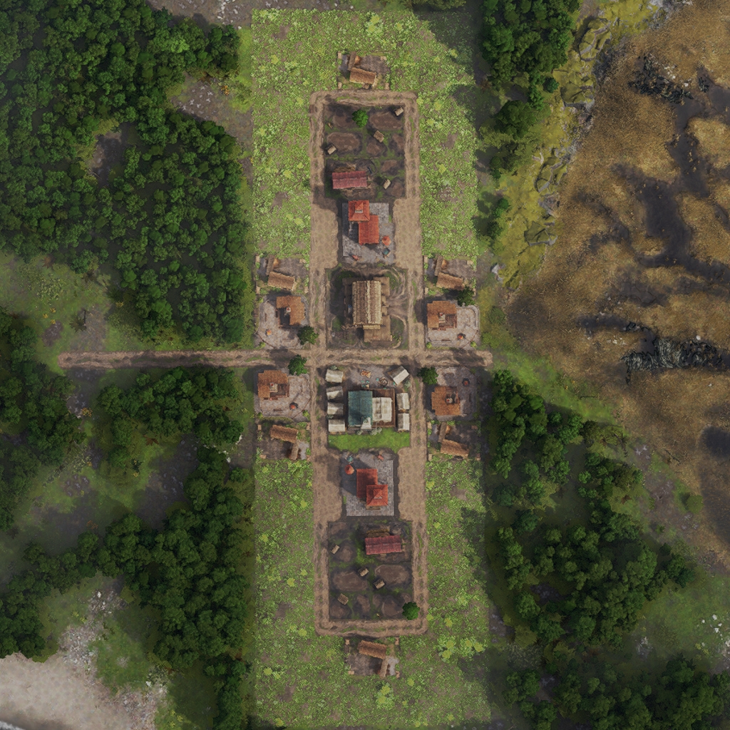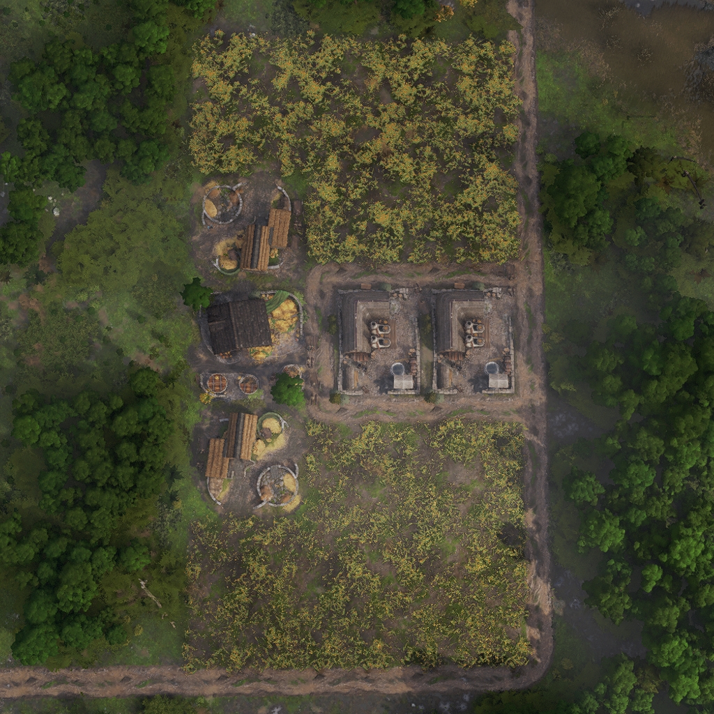 It features 8 full production chains as well as a warehouse to store the goods. Roads can exit on all four connection points at the terminal sawmills.