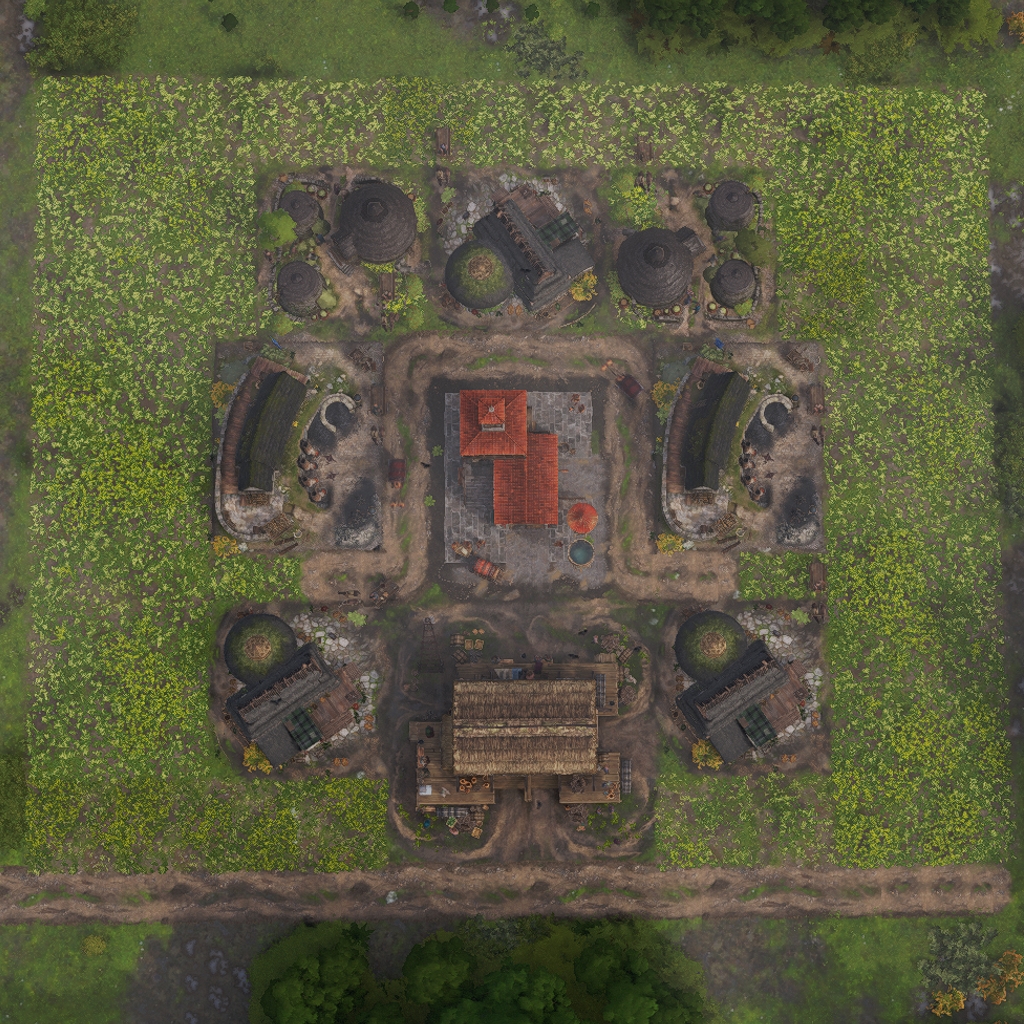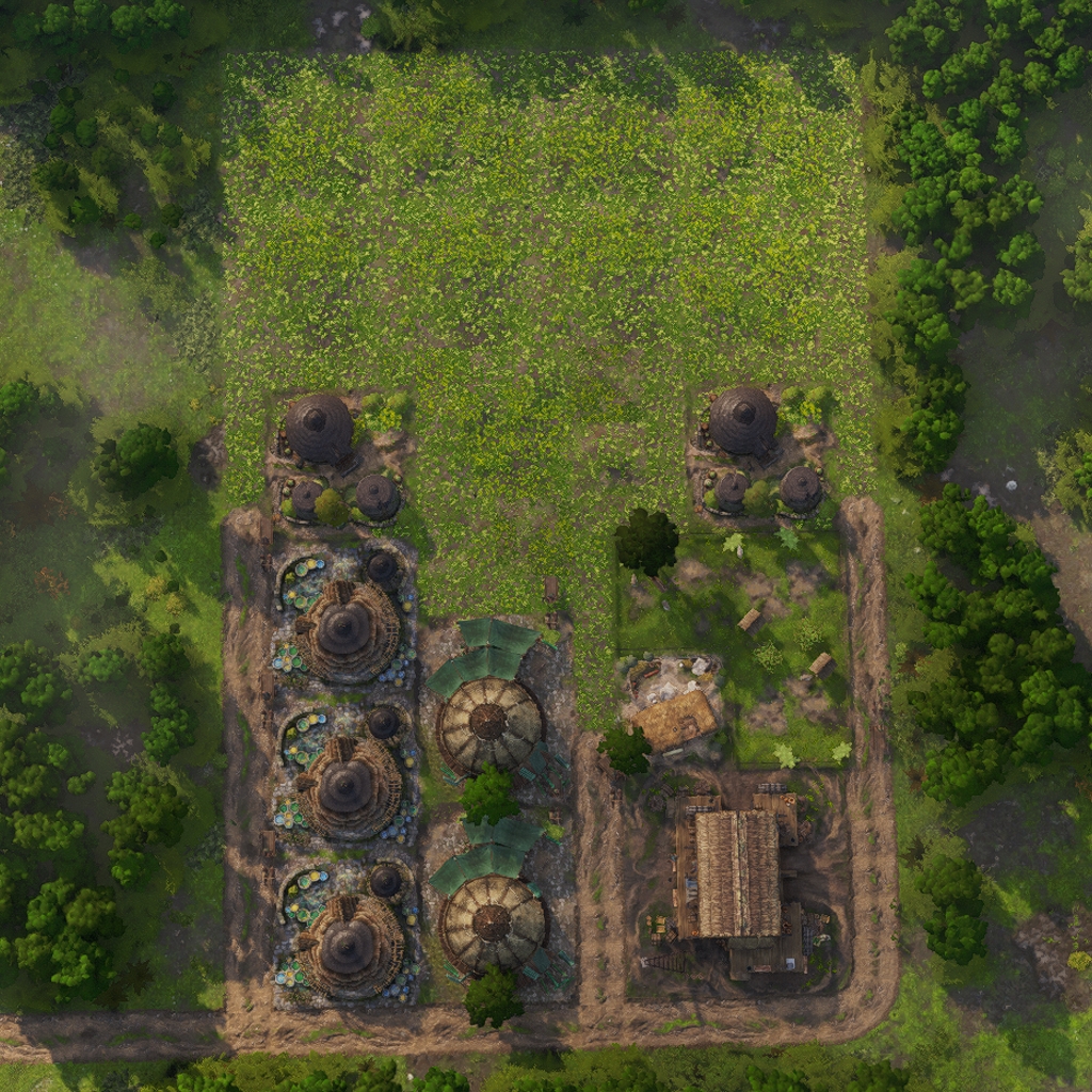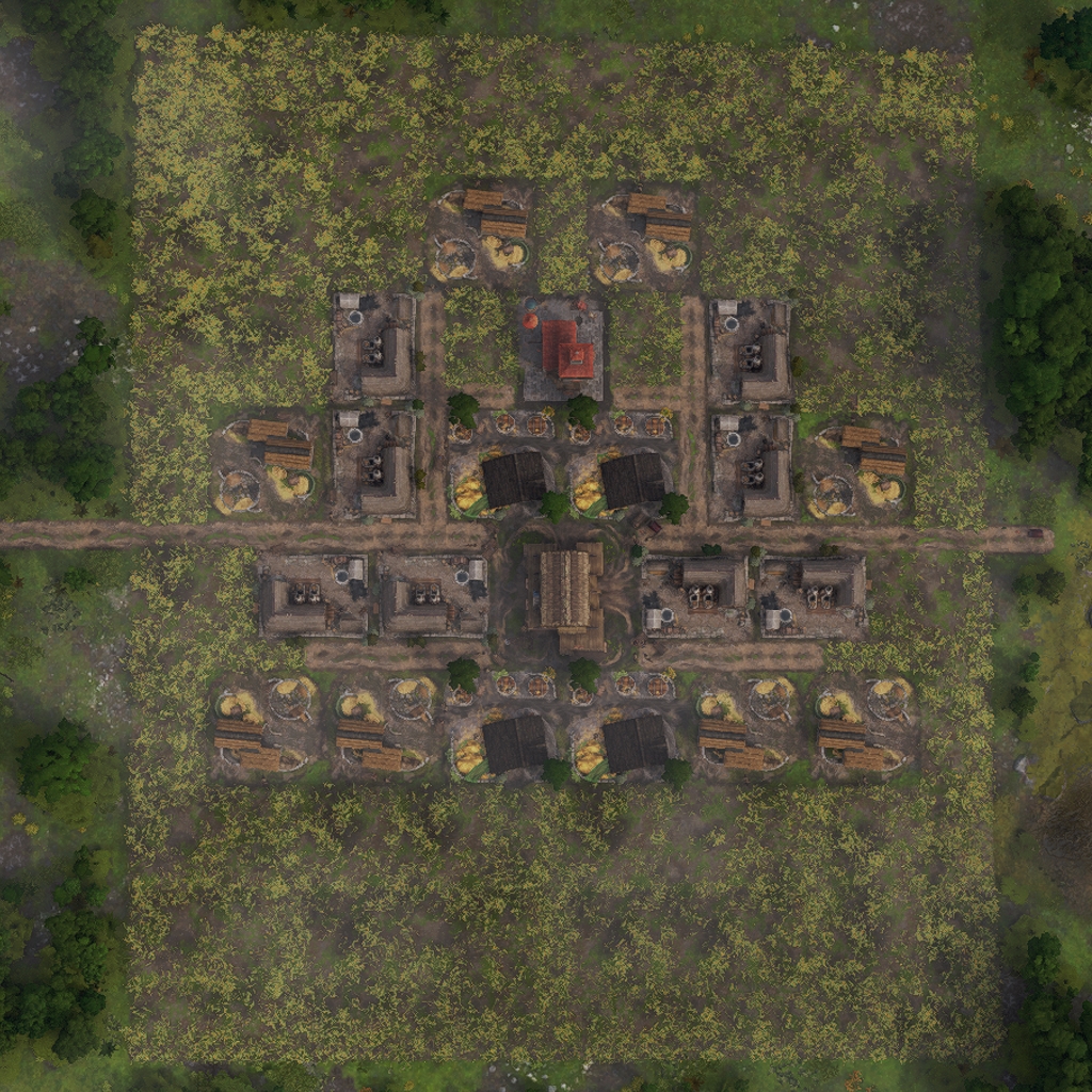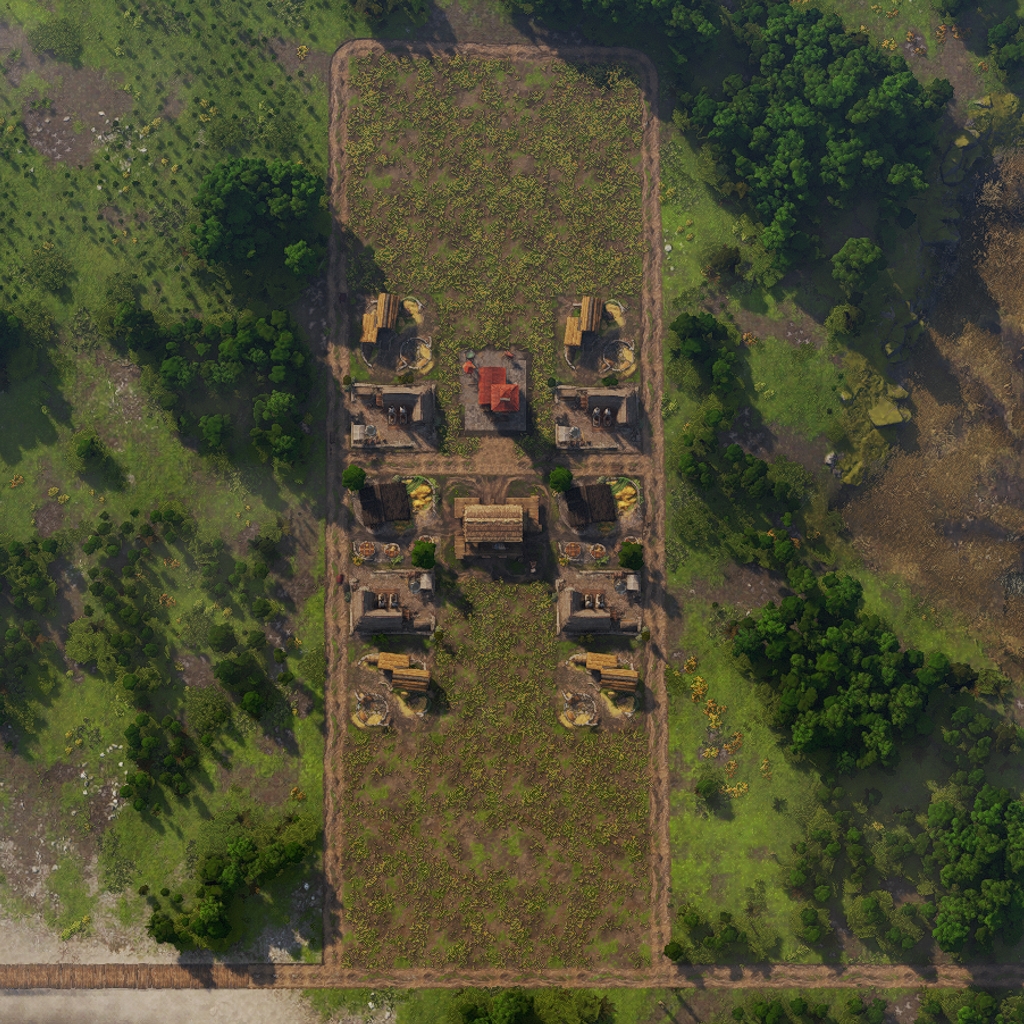 The layout features all necessary land based production buildings to fully supply the housing inside.
