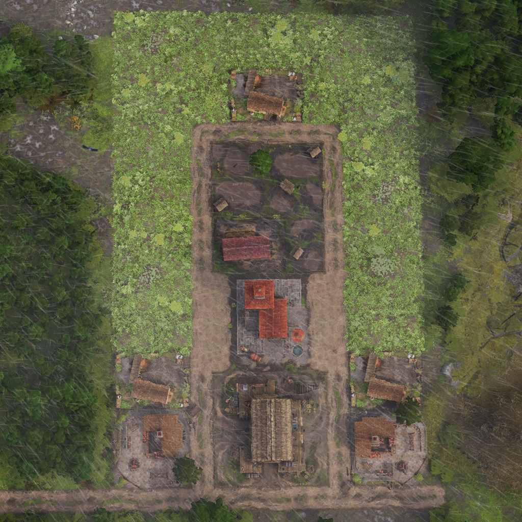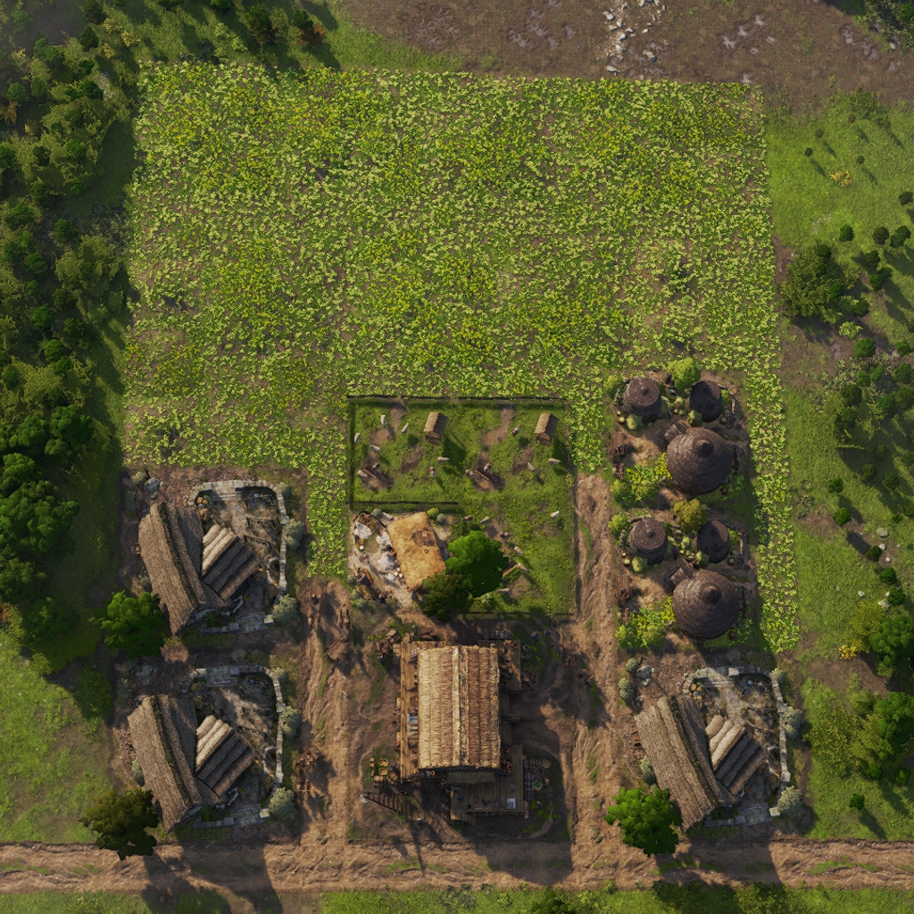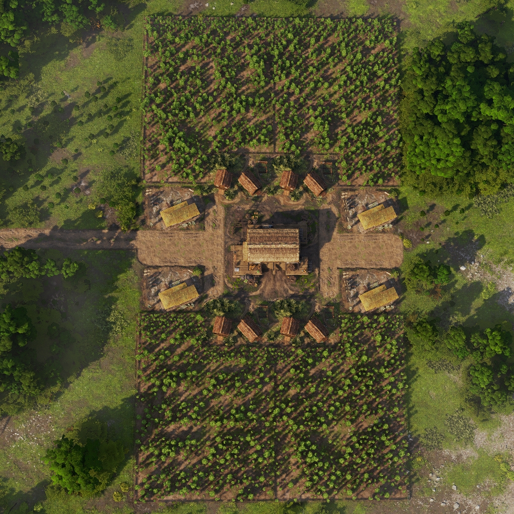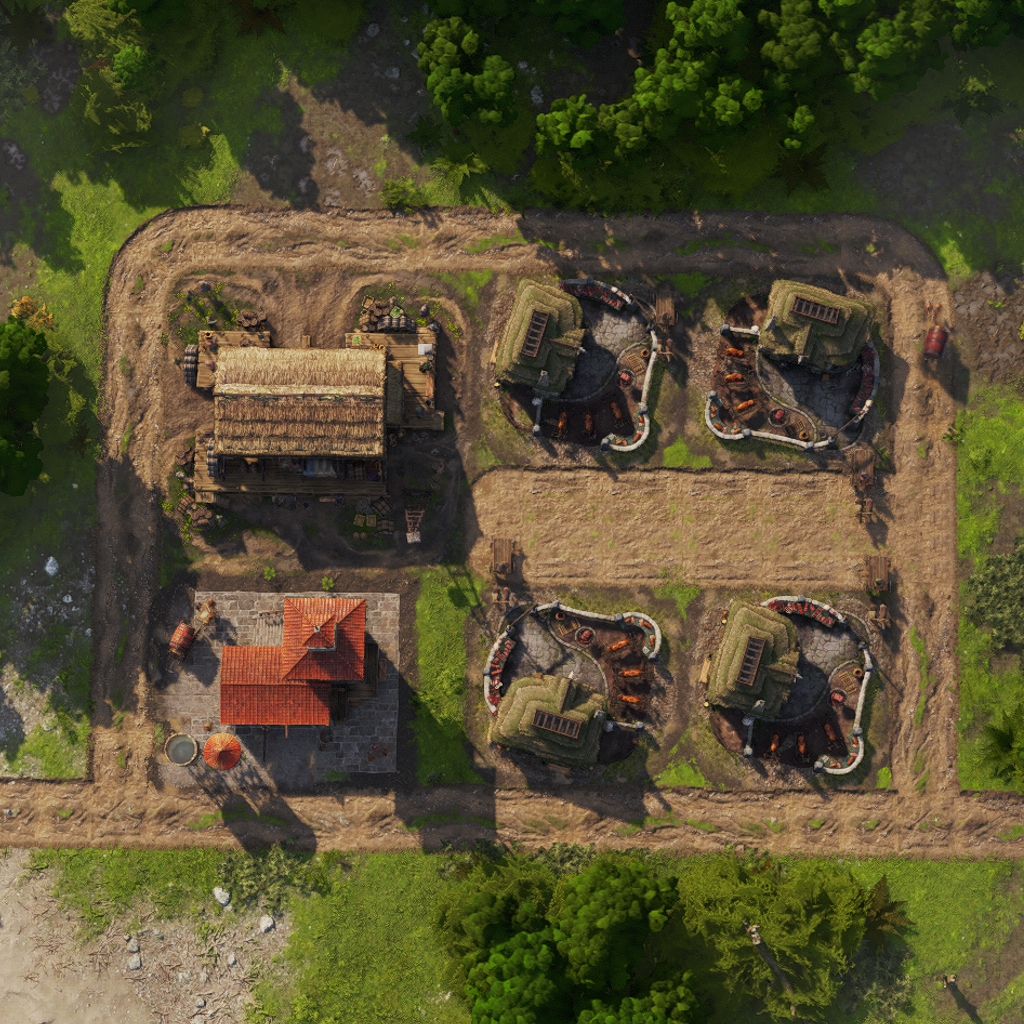 The layout features all necessary land based production buildings to fully supply the housing inside.
