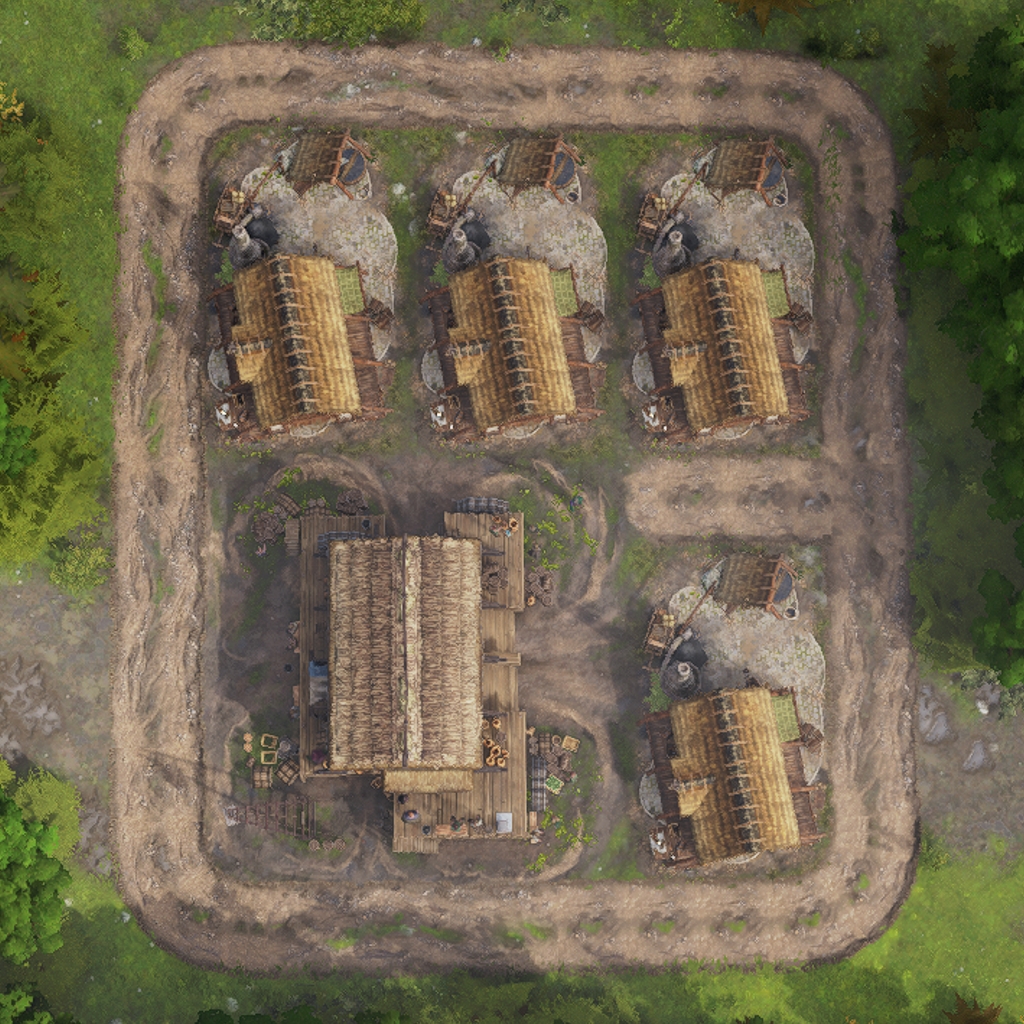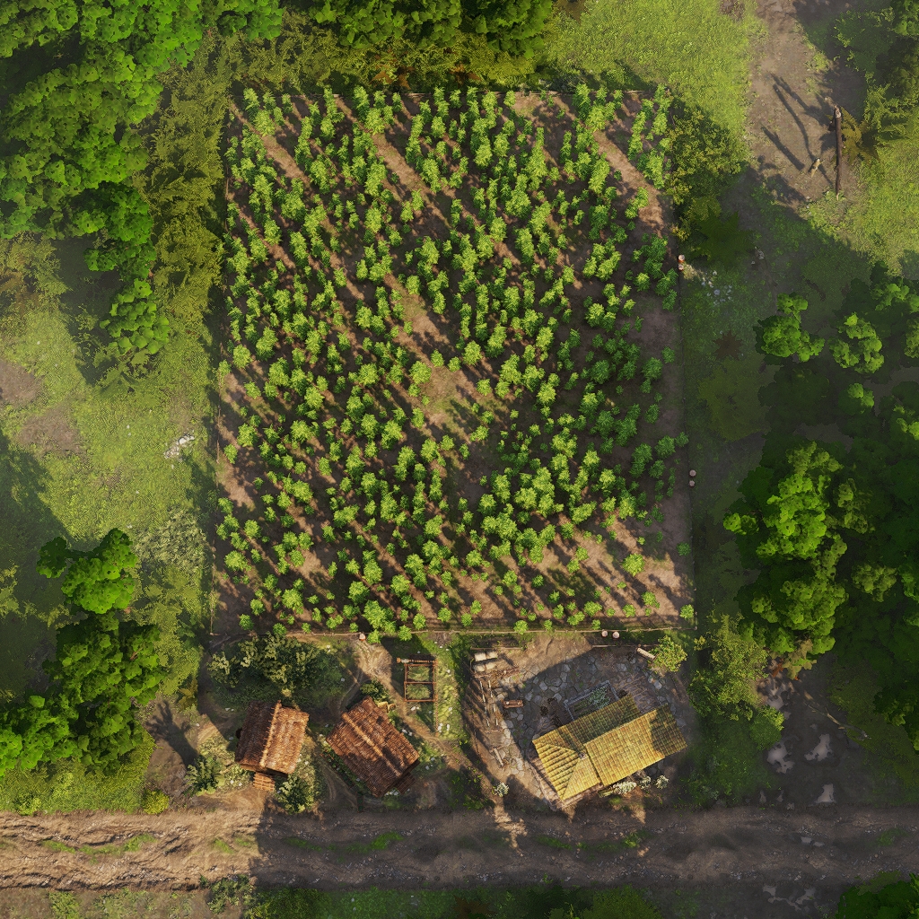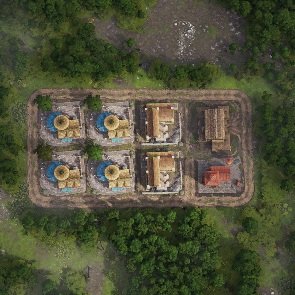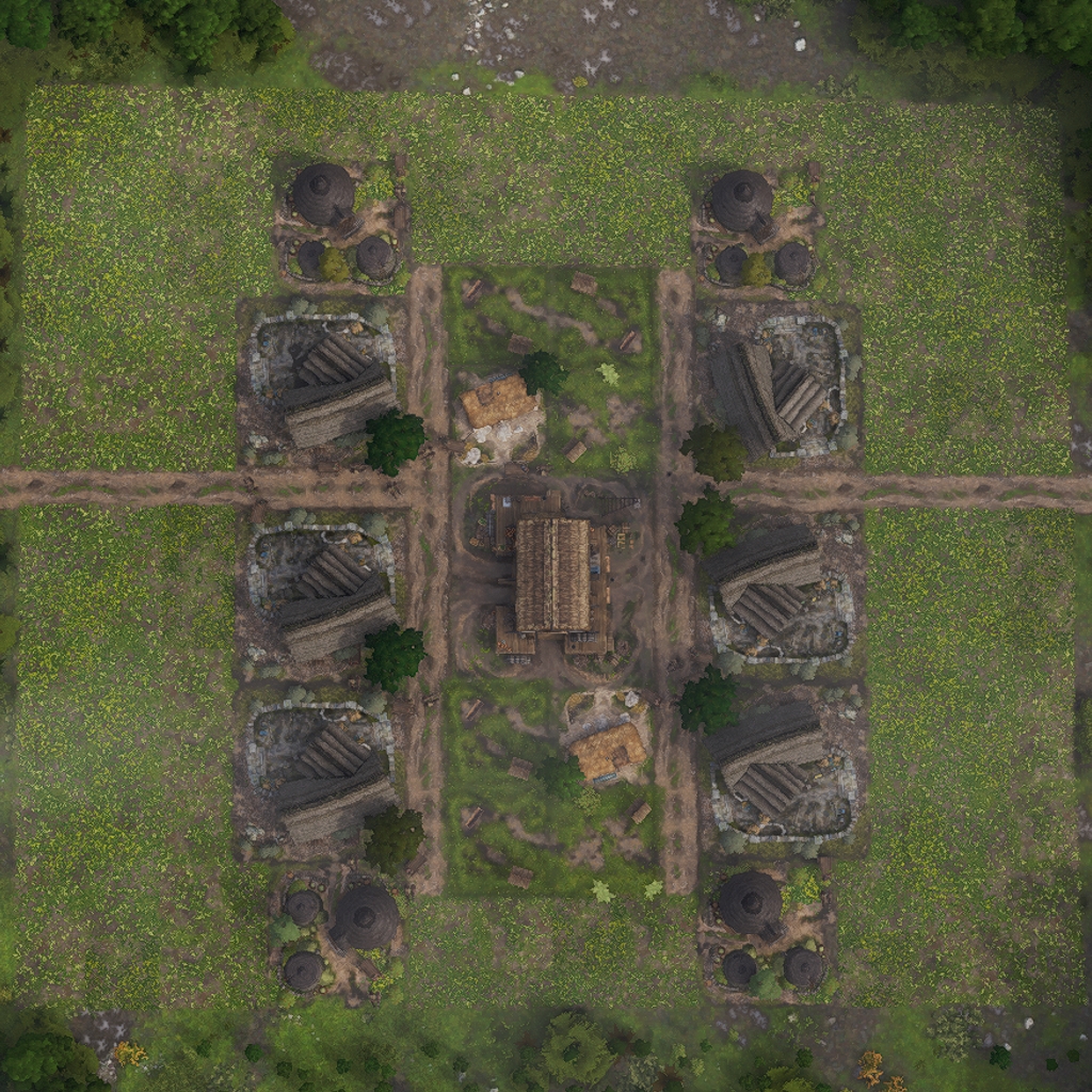 The layout features all necessary land based production buildings to fully supply the housing inside.