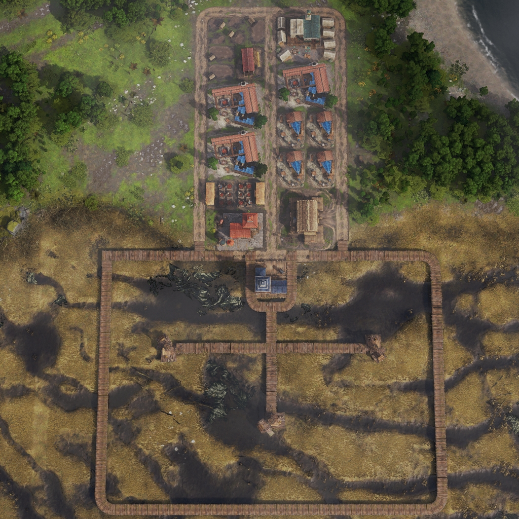 A basic layout for nearly every coastal building once you unlocked the Discovery to place the buildings in the harbour area.