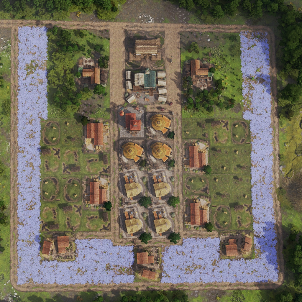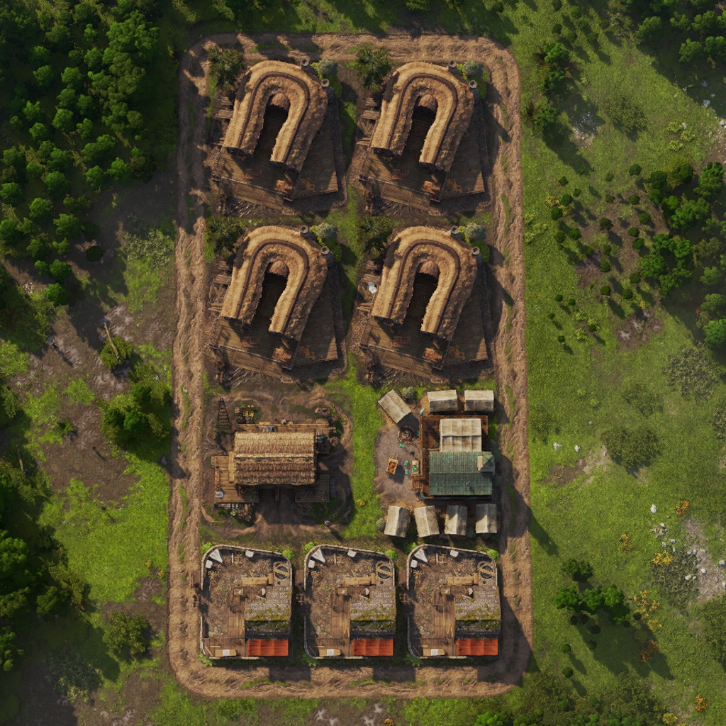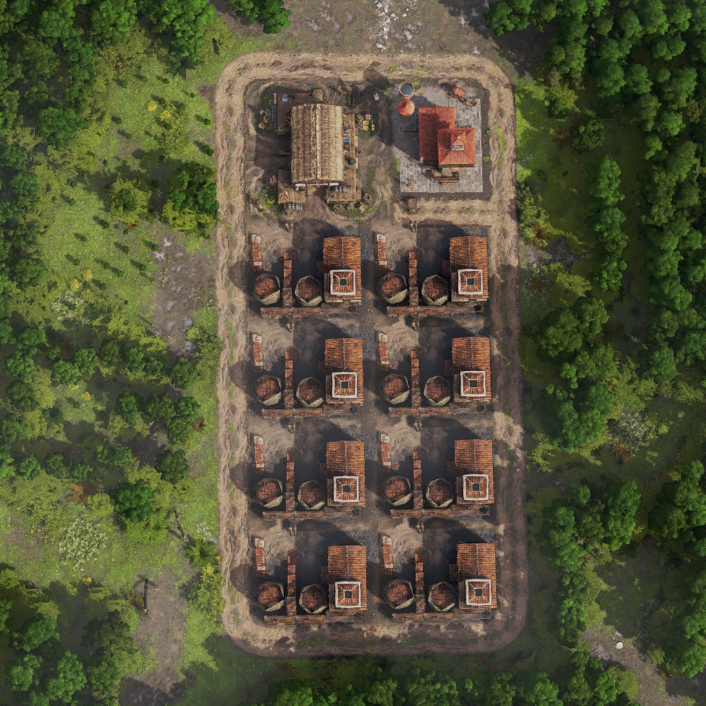 It features 12 Charcoal Burners, a warehouse to store all the products and two Vigiles and Medici to compensate for the negative fire safety and health debuff from the Charcoal Burners.