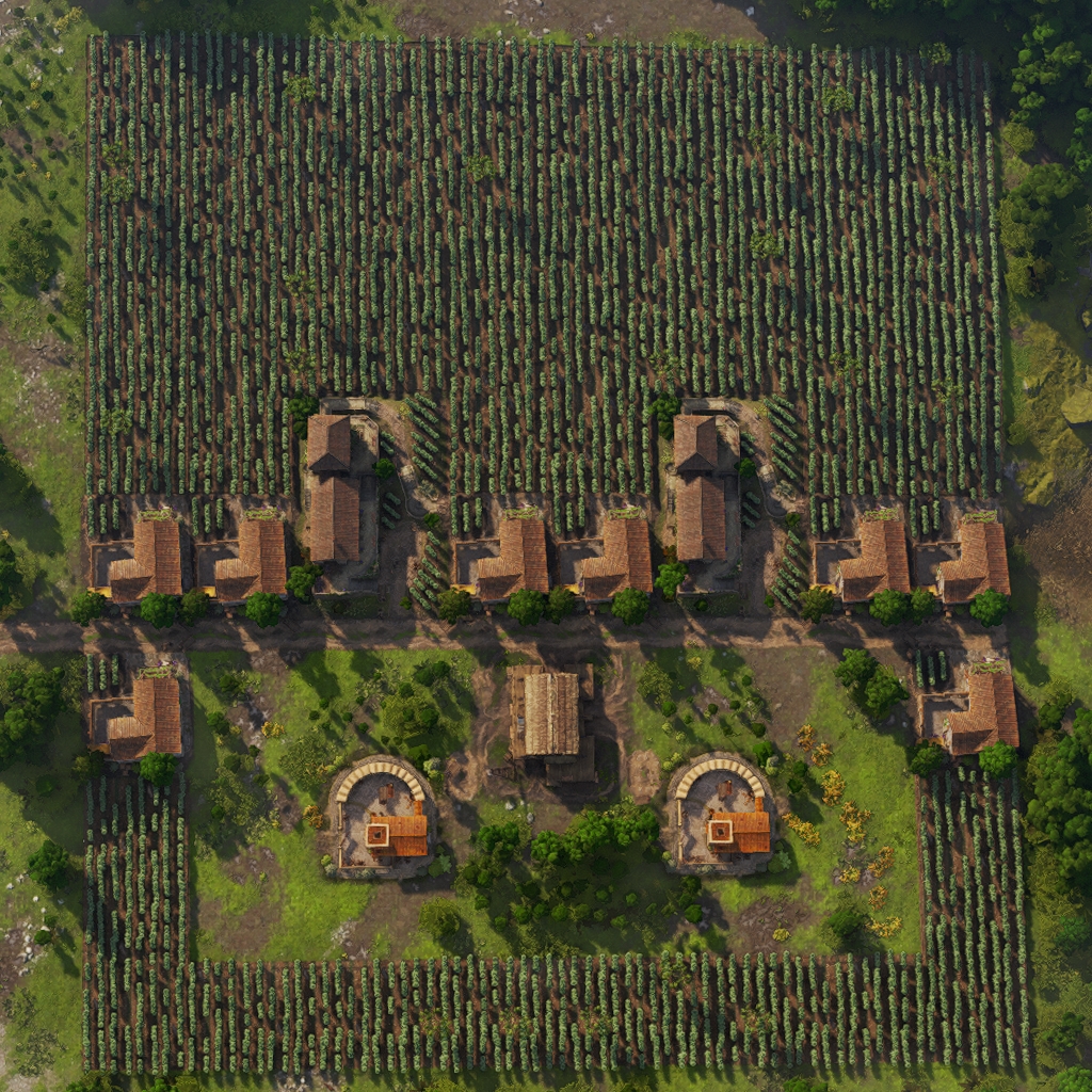 It features a full production chains as and a warehouse to store the goods as well as a Vigiles and a Medicus to compensate for the debuffs of all the different production buildings.
